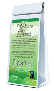 Ingrédients conformes aux standards du commerce équitable Fairtrade / Max Havelaar : thé vert chun mee, thé vert jasmin, thé blanc Paï Mu Tan (93% du poids total).